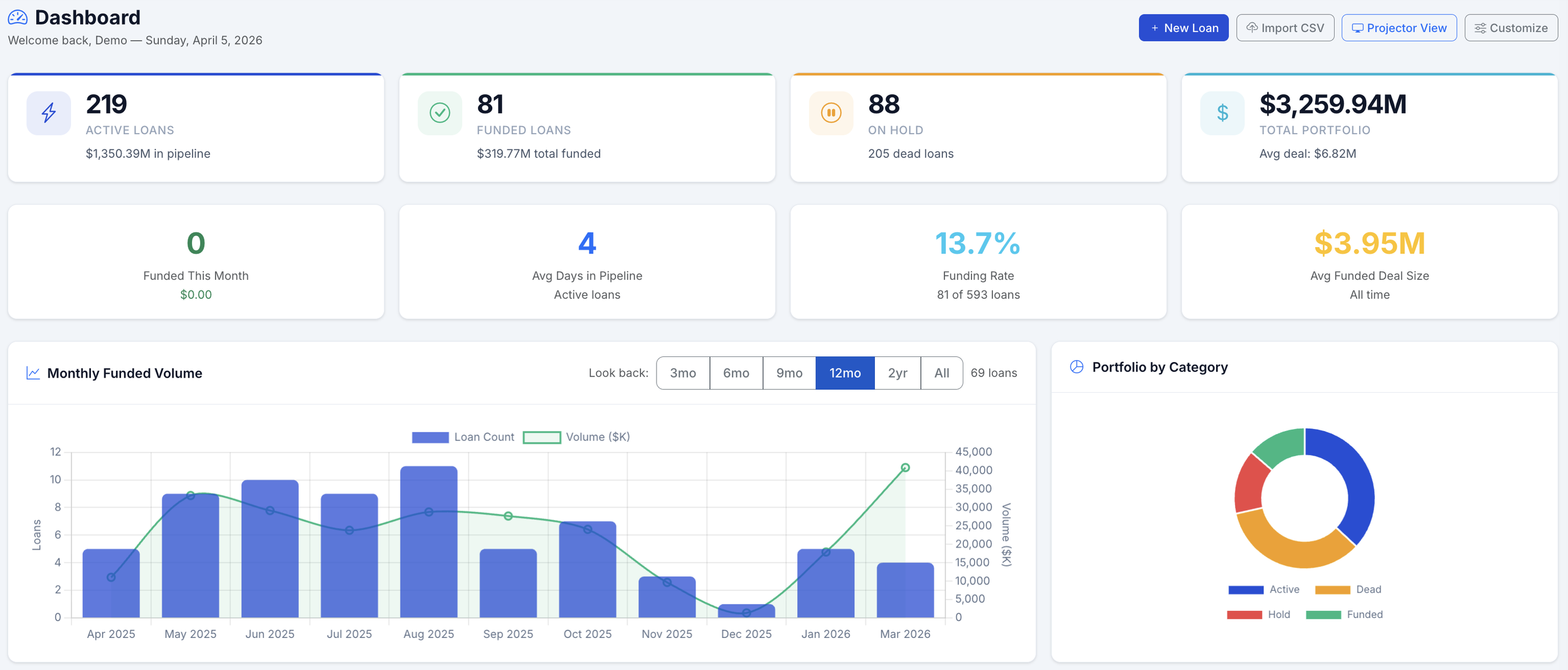Key metrics surfaced automatically — average time to close, pipeline velocity, active vs. close vs. dead deal counts.